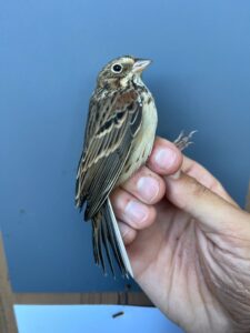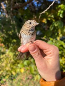 But the week wasn’t just about numbers. On Friday, October 24, the team was treated to a very special moment: the capture of a Vesper Sparrow, a first-of-season and first-ever for the banding station! This subtly beautiful grassland bird drew plenty of admiration from those lucky enough to get a quick look before it was released back into the Meadows, a fitting guest for such an exceptional week of migration.